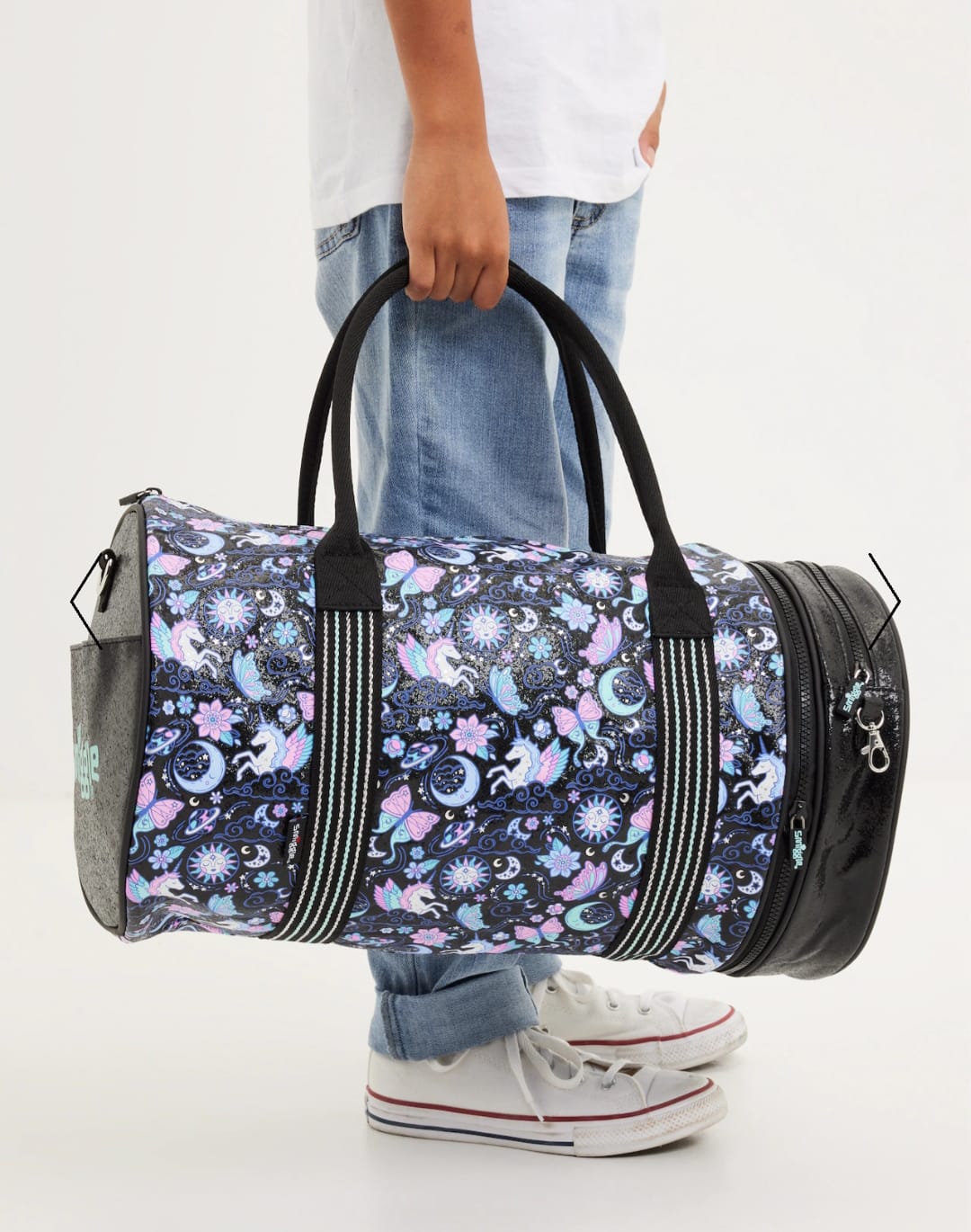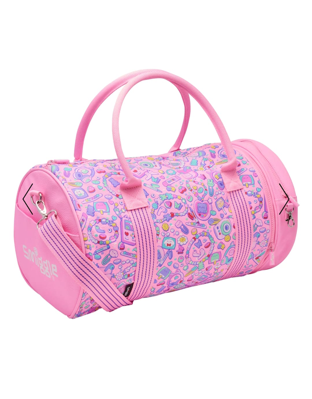 Perfect for weekend adventures or travel, our Super Charge Barrel Bag is the perfect combination of storage and style! This bag features a super roomy zipped main compartment with double carry handles, detachable shoulder strap and front storage pocket. Even better, the front pocket unzips to become an adorable round shoulder bag with an included shoulder strap for on-the-go exploration!